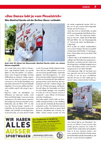 Freizeit den Kindern die vielfältigen Be- weiß Jörn Lars Gerlach, der stellvertretende Baddouh haben schon mal einen Auch nach 34 Jahren hat Mauermaler Manfred Garske nichts von seinem Stattdessen entschied sich der mittlerweile